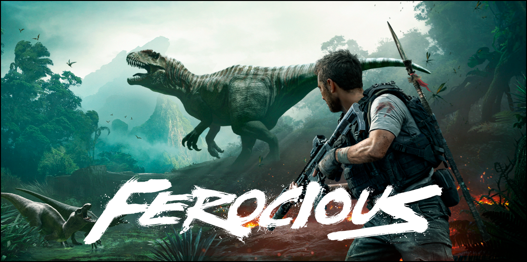 A: FEROCIOUS is a single-player survival FPS set on a deadly, lost island filled with hostile soldiers, wild terrain, and prehistoric creatures.